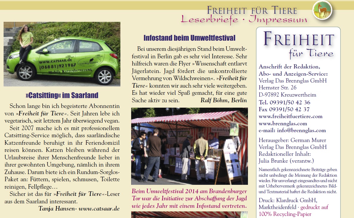 Freiheit für Tiere Sommer 2014